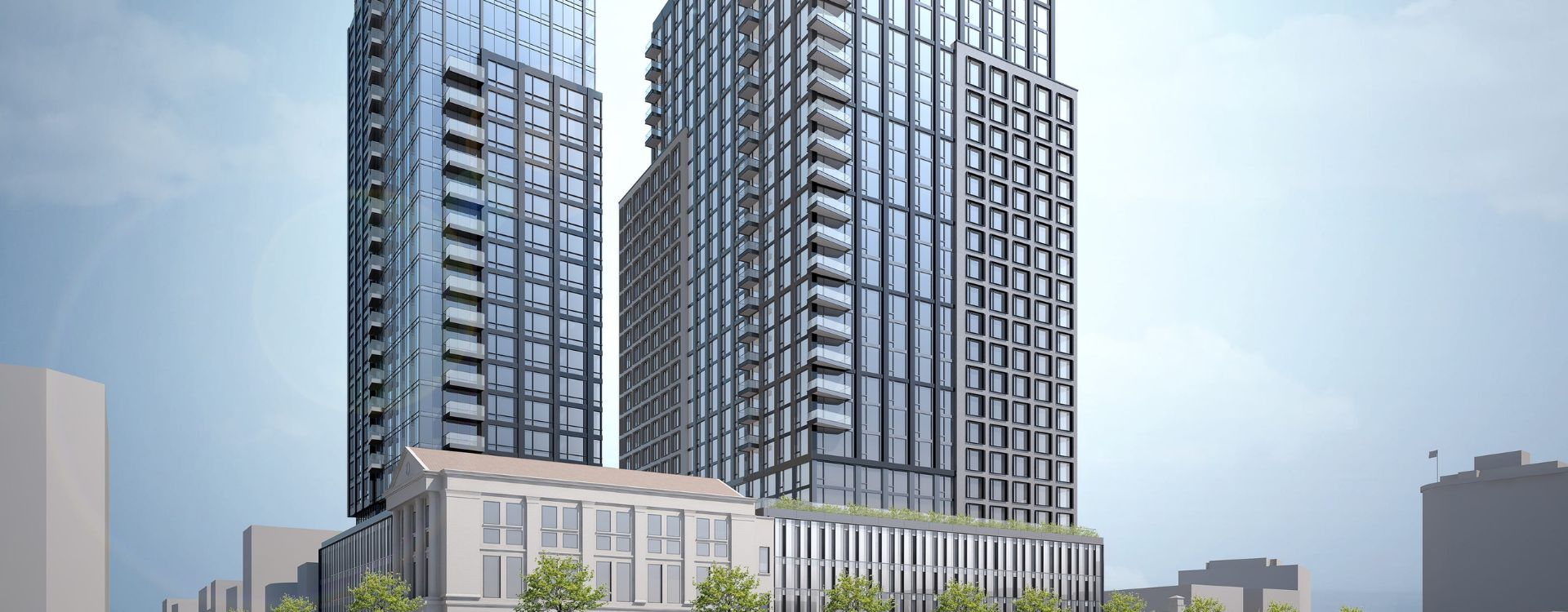 Completed in phases between 2019 and 2021, LeCount Square is a prominent mixed-use development in downtown New Rochelle featuring two high-rise towers rising approximately 40–50 stories above a shared podium. The project includes 459 residential units, a 162-key hotel totaling approximately 130,000 gross square feet, 85,000 gross square feet of office space, and a three-level below-grade parking garage providing approximately 800 spaces. A multi-story podium integrates retail, restaurant, and amenity spaces, activating the streetscape and supporting the vertical mixed-use program above.